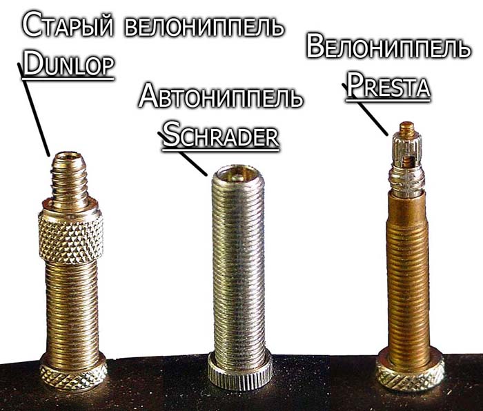 При этом диаметр резьбы был значительно меньше диаметра вариантом исполнения для автомобилей. Для того чтобы накачать подобную шину нужно было иметь специальный насос. В продаже уже практически нет камер с подобными ниппелями.