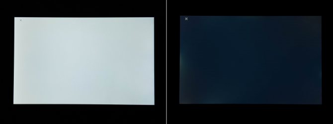 Равномерность заливки белого отличная, никаких пятен или отличающихся в яркости участков. Равномерность черного неплохая, как для IPS экранов, но по краям можно заметить утечку подсветки.